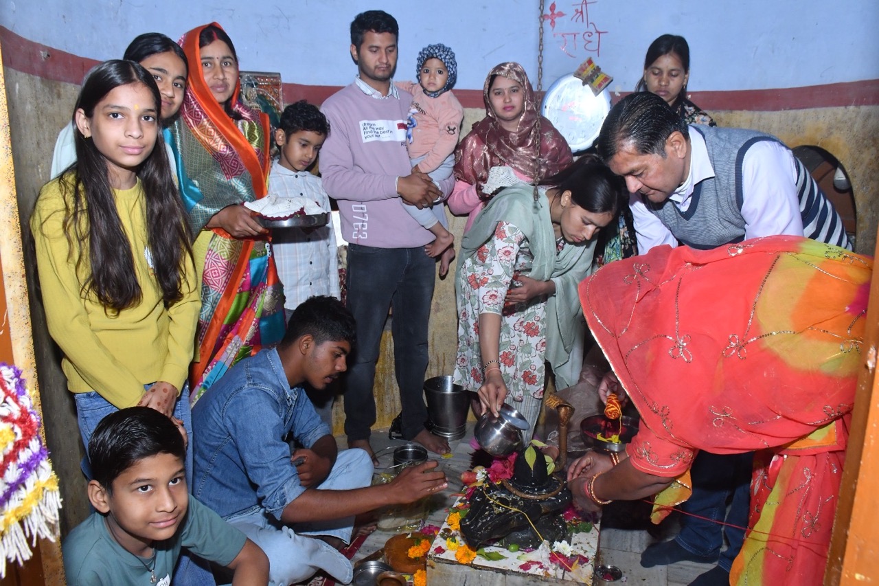 चूरू। शहर में महाशिवरात्रि पर्व रविवार को श्रद्धा और उल्लास के साथ मनाया गया। शहर के शिव मंदिरों में सुबह से ही श्रद्धालुओं की भारी भीड़ उमड़ पड़ी, शिव भक्तो ने भगवान शंकर की विशेष पूजा-अर्चना की। श्रद्धालुओं ने अलसुबह से ही मंदिरों में कतारें लगानी शुरू कर दी थीं। शिवालयों में दिनभर ओम नमः शिवाय का जाप गूंजता रहा। भक्तों ने भगवान शिव को दूध, पंचामृत, फल, धतूरा, बेलपत्र, पुष्प, अबीर, गुलाल और भस्म अर्पित कर जलाभिषेक व दुग्धाभिषेक किया। कई मंदिरों में भगवान शंकर का रुद्राभिषेक भी किया गया। इस दौरान मंदिरों में भगवान शंकर का दिव्य श्रृंगार किया गया। महाआरती के बाद श्रद्धालुओं ने प्रसाद ग्रहण किया। शहर के विभिन्न मंदिरों में दिनभर भक्तों का तांता लगा रहा। पर्व को देखते हुए शहर के मंदिरों में पुलिस बल तैनात रहा। महिला श्रद्धालु नीलम वर्मा ने बताया कि भगवान शंकर की पूजा-अर्चना करने से मनुष्य के कष्टों का निवारण होता है। शहर के प्रमुख मंदिरों जैसे सब्जी मंडी स्थित महामंगलेश्वर मंदिर, शंकरनाथ जी की छतरी, पुलिस लाइन स्थित शिव मंदिर, जयपुर आरओबी के नीचे शिव मंदिर, नया बास शिव मंदिर, नए बस स्टैंड के पास शिव मंदिर, सफेद घंटाघर स्थित गंगामाई मंदिर, ओम कॉलोनी स्थित शिवालय, शारदा स्कूल के पास शिवालय, गढ़ स्थित ठाकुरजी मंदिर, रामजस कुएं के पास हनुमानधोरा मंदिर, टांई वालों की छतरी में स्थित शिवालय और कालीकमली मंदिर के शिवालय सहित अनेक स्थानों पर श्रद्धालुओं ने जलाभिषेक कर पूजा-अर्चना की।
