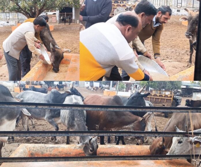 पितृ पुण्य तिथि पर गौशाला में किया गौमाताओं का पूजन व भोग अर्पण