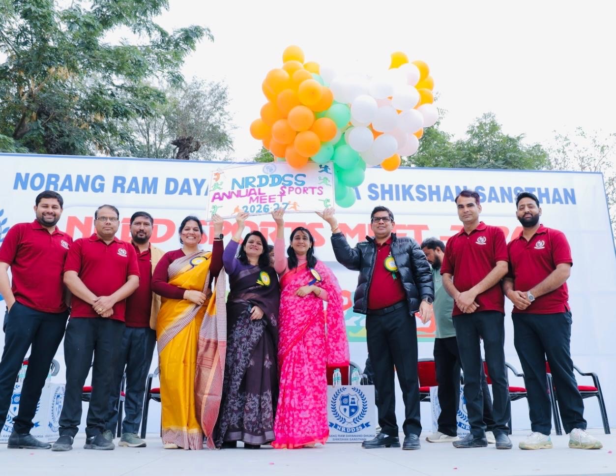नौरंगराम दयानंद ढूकिया शिक्षण संस्थान में स्पोर्ट्स मीट 2026 का भव्य शुभारंभ हर्षोल्लास के साथ किया गया। कार्यक्रम का शुभारंभ मुख्य अतिथि भारत सरकार के युवा कार्यक्रम एवं खेल मंत्रालय के माय भारत केंद्र की जिला युवा अधिकारी मधु यादव तथा विशिष्ट अतिथि अतिरिक्त कोषाधिकारी प्रियंका लाम्बा की गरिमामयी उपस्थिति में हुआ। कार्यक्रम का उद्घाटन दीप प्रज्ज्वलन के साथ किया गया। इस अवसर पर विद्यार्थियों द्वारा आकर्षक मार्च पास्ट एवं मशाल प्रज्ज्वलन प्रस्तुत कर मुख्य अतिथियों को सलामी दी गई। मुख्य अतिथि मधु यादव एवं प्रियंका लाम्बा, संस्थान सचिव डॉ. संदीप एवं संस्थान अध्यक्ष डॉ. सुनिता ढूकिया द्वारा संस्थान फ्लैग होस्टिंग की गई।