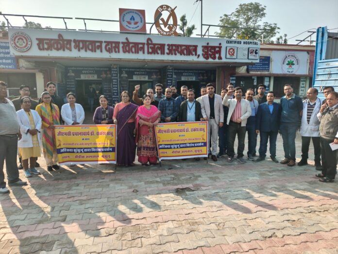 जिले के 175 संस्थानों के 400 चिकित्सक लगातार विरोध प्रदर्शन पर