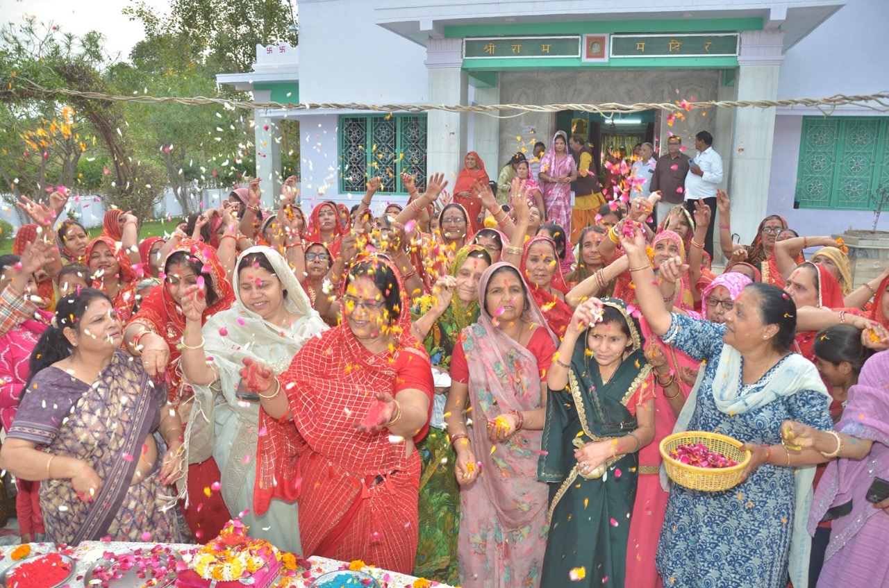 श्रीराम मंदिर में महिलाओं ने खेली फूलों की होली