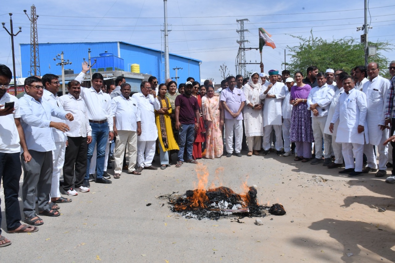 चूरू। राजस्थान प्रदेश कांग्रेस कमेटी के निर्देशानुसार चूरू जिला कांग्रेस कमेटी की ओर से चूरू जिलाध्यक्ष व सुजानगढ़ विधायक मनोज मेघवाल के नेतृत्व में गैस सिलेंडर के दामो में वृद्धि, आपूर्ति में बाधित सप्लाई और कालाबाजारी के विरोध में केन्द्र सरकार के खिलाफ जिला कलेक्ट्रेट के आगे धरना-प्रदर्शन कर पीएम का पूतला फूंका। ईंधन की उपलब्धता को लेकर चूरू जिला कांग्रेस कमेटी के अध्यक्ष व सुजानगढ विधायक मनोज मेघवाल ने केन्द्र सरकार पर निशाना साधते हुए कहा कि मिडिल ईस्ट में जारी संघर्ष के दूसरे सप्ताह में प्रवेश करने के साथ ही होर्मुज स्ट्रेट में समुद्री यातायात में व्यवधान के बीच सरकार ईंधन की उपलब्धता को लेकर जनता को गुमराह कर रही है। मेघवाल ने कहा कि सरकार की गलत नीतियों के कारण लगातार महंगाई बढ़ रही है, घरेलू गैस सिलेंडर पर 60 रूपये और व्यावसायिक सिलेंडर पर 110 रूपये की बढ़ोतरी ने आमजन की रसोई में खटास पैदा कर दिया है। उन्होंने कहा कि गैस सिलेंडर के दामो में वृद्धि, आपूर्ति में बाधित सप्लाई और कालाबाजारी से आम लोग परेशान है और कांग्रेस लगातार इस मुद्दे को उठा रही है, उन्होंने चेतावनी दी कि यदि सरकार ने महंगाई पर जल्द लगाम नहीं लगाया तो कांग्रेस आंदोलन को और तेज करेगी। हाल ही में मोदी ने ट्रंप और अमेरिका के दबाब में जिस प्रकार के समझौते किये हैं उनके दुष्परिणाम अब देश के सामने आ रहे हैं। केन्द्र सरकार की विदेश नीति पूर्णतः फैल हो चुकी है। इस अवसर पर रतनगढ़ विधायक पुसाराम गोदारा ने कहा कि कुछ ही दिनों में अगर सरकार बढ़ी हुई किमतें वापस नहीं लेगी और आमजन को राहत नहीं देगी तो जिलाध्यक्ष के नेतृत्व में सड़क से लेकर सदन तक लडाई लडेंगे। पूर्व विधायक कृष्णा पुनियां ने कहा कि आमजन के गैस सिंलेडर के ऑनलाईन बुकिंग में भारी समस्या चल रही है, आमजन में त्राहि-त्राहि मची हुई है। इस अवसर पर धर्मेन्द्र बुड़ानिया, गोविन्द महनसरिया, असलम खोखर, किशोर धान्धू, आदूराम न्यौल, पीसीसी सचिव मुस्ताक खान, मोहम्मद हुसैन निर्बाण, आशाराम सैनी, आरिफ रिसालदार, जमील चौहान, डॉ. योगीता सक्सेना, प्रदीप तोदी, बजरंग लाल सैन, संजय दिक्षित, सोहनलाल मेघवाल, शिवकुमार शर्मा, सुनिता कपुरिया, अंजनी शर्मा, विनोद खटीक, योगेश ढ़ाका, बाबू मंत्री, अशोक पंवार, विकास मील, पवन भोजक, प्रिया प्रजापत, किरण, पालाराम शर्मा सहित बड़ी संख्या में कांग्रेस पदाधिकारी व कार्यकर्ता उपस्थित थे। कार्यक्रम का संचालन डॉ. प्यारेलाल दानोदिया ने किया।