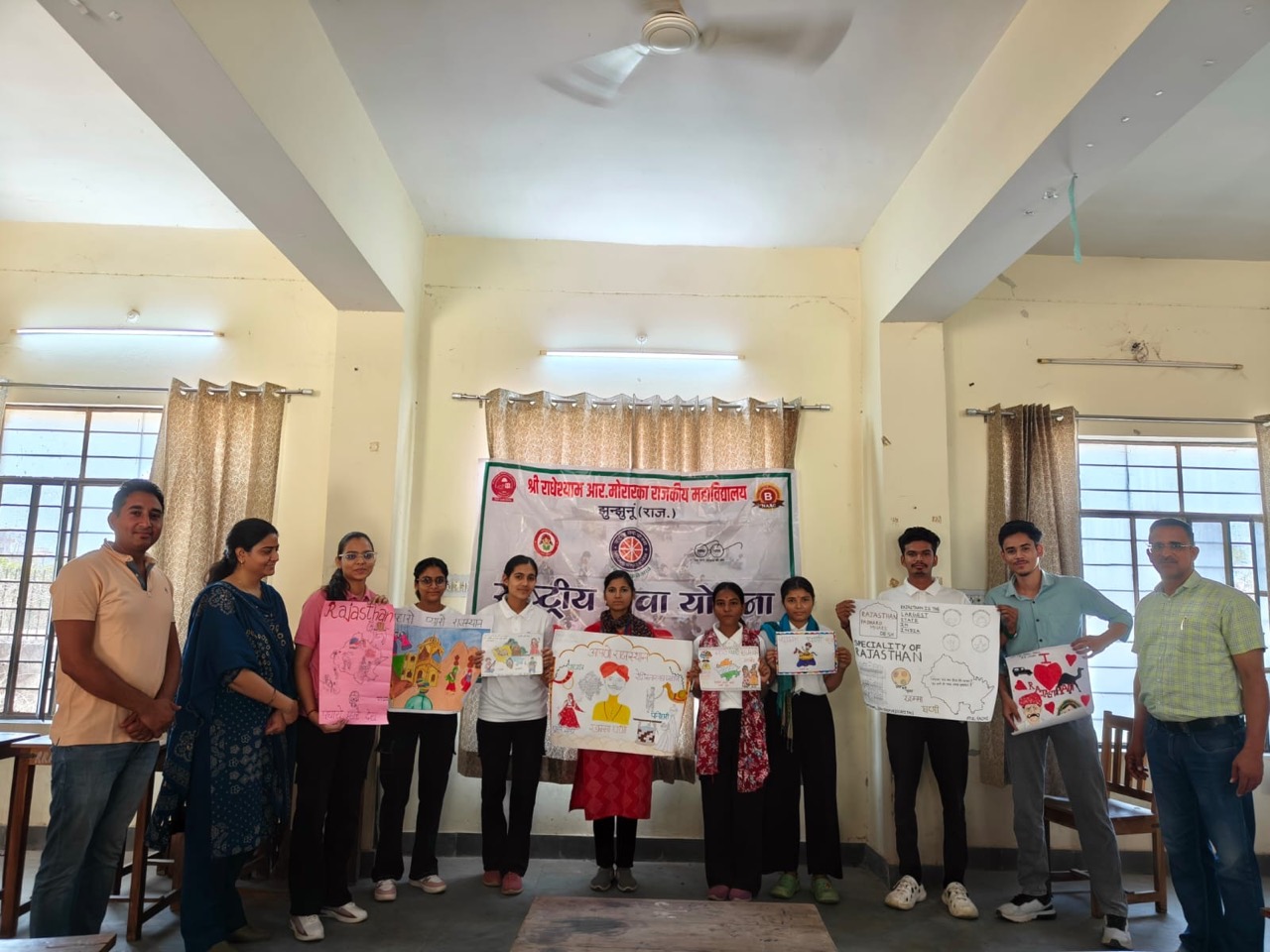 राष्ट्रीय सेवा योजना के एक दिवसीय शिविर में राजस्थान दिवस सप्ताह के अंतर्गत विभिन्न प्रतियोगिताओं के आयोजन के साथ जल महोत्सव मनाया गया। राष्ट्रीय सेवा योजना की तीनों इकाई द्वारा महाविद्यालय परिसर में तृतीय एक दिवसीय शिविर का आयोजन किया गया। कार्यक्रम का शुभारंभ महाविद्यालय के प्राचार्य प्रो. सुरेंद्र सिंह द्वारा दीप प्रज्ज्वलन कर किया गया। इस अवसर पर प्राचार्य प्रो. सुरेंद्रसिंह ने अपने उद्बोधन में राजस्थान दिवस के महत्व पर प्रकाश डालते हुए विद्यार्थियों को राजस्थान की समृद्ध संस्कृति, इतिहास एवं परंपराओं को जानने के लिए प्रेरित किया। साथ ही उन्होंने जल संरक्षण की आवश्यकता पर बल देते हुए कहा कि जल हमारे जीवन का अमूल्य आधार है और इसके संरक्षण के लिए सभी को मिलकर प्रयास करना चाहिए। शिविर का आयोजन तीन सत्रों में किया गया। प्रथम सत्र में श्रमदान कार्यक्रम के अंतर्गत एनएसएस स्वयंसेवकों द्वारा महाविद्यालय परिसर एवं आसपास के क्षेत्रों में स्वच्छता अभियान चलाया गया। स्वयंसेवकों ने उत्साहपूर्वक साफ-सफाई कर एकत्रित कचरे का उचित निस्तारण किया तथा स्वच्छता का संदेश दिया। द्वितीय सत्र बौद्धिक एवं रचनात्मक गतिविधियों के अंतर्गत आयोजित किया गया। राजस्थान दिवस के अवसर पर राजस्थान को जानें विषय पर प्रश्नोत्तरी प्रतियोगिता, राजस्थान की संस्कृति एवं विरासत पर आधारित चित्रकला (पेंटिंग) प्रतियोगिता तथा भाषण प्रतियोगिता का आयोजन किया गया। इन प्रतियोगिताओं में एनएसएस स्वयंसेवकों ने बढ़-चढ़कर भाग लिया और अपनी प्रतिभा का उत्कृष्ट प्रदर्शन किया। प्रश्नोत्तरी प्रतियोगिता में एकता बीए द्वितीय सेमेस्टर, मनीषा बीए द्वितीय सेमेस्टर व तनुजा चौधरी बीए द्वितीय सेमेस्टर, चित्रकला प्रतियोगिता में कशिश चाहर बीए द्वितीय सेमेस्टर, एकता बीए द्वितीय सेमेस्टर व शुभम बीए द्वितीय सेमेस्टर तथा भाषण प्रतियोगिता में तोहिद बीएससी द्वितीय सेमेस्टर गणित, प्रियंका बीए द्वितीय सेमेस्टर तथा साहिल बीएससी द्वितीय सेमेस्टर जीवविज्ञान ने क्रमश: प्रथम, द्वितीय तथा तृतीय स्थान प्राप्त किया। तृतीय सत्र में जल संरक्षण का संदेश देते हुए स्वयंसेवकों द्वारा महाविद्यालय परिसर में लगे पौधों की निराई-गुड़ाई की गई तथा उन्हें पानी दिया गया। इसके साथ ही पक्षियों के लिए परिंडों में पानी भरकर पर्यावरण संरक्षण एवं जीव-जंतुओं के प्रति संवेदनशीलता का संदेश दिया गया। इस अवसर पर कार्यक्रम अधिकारी डॉ. विकास मील, रमेश कुमार एवं डॉ. आकांक्षा डूडी सहित महाविद्यालय का समस्त स्टाफ तथा एनएसएस की तीनों इकाइयों के स्वयंसेवक उपस्थित रहे।