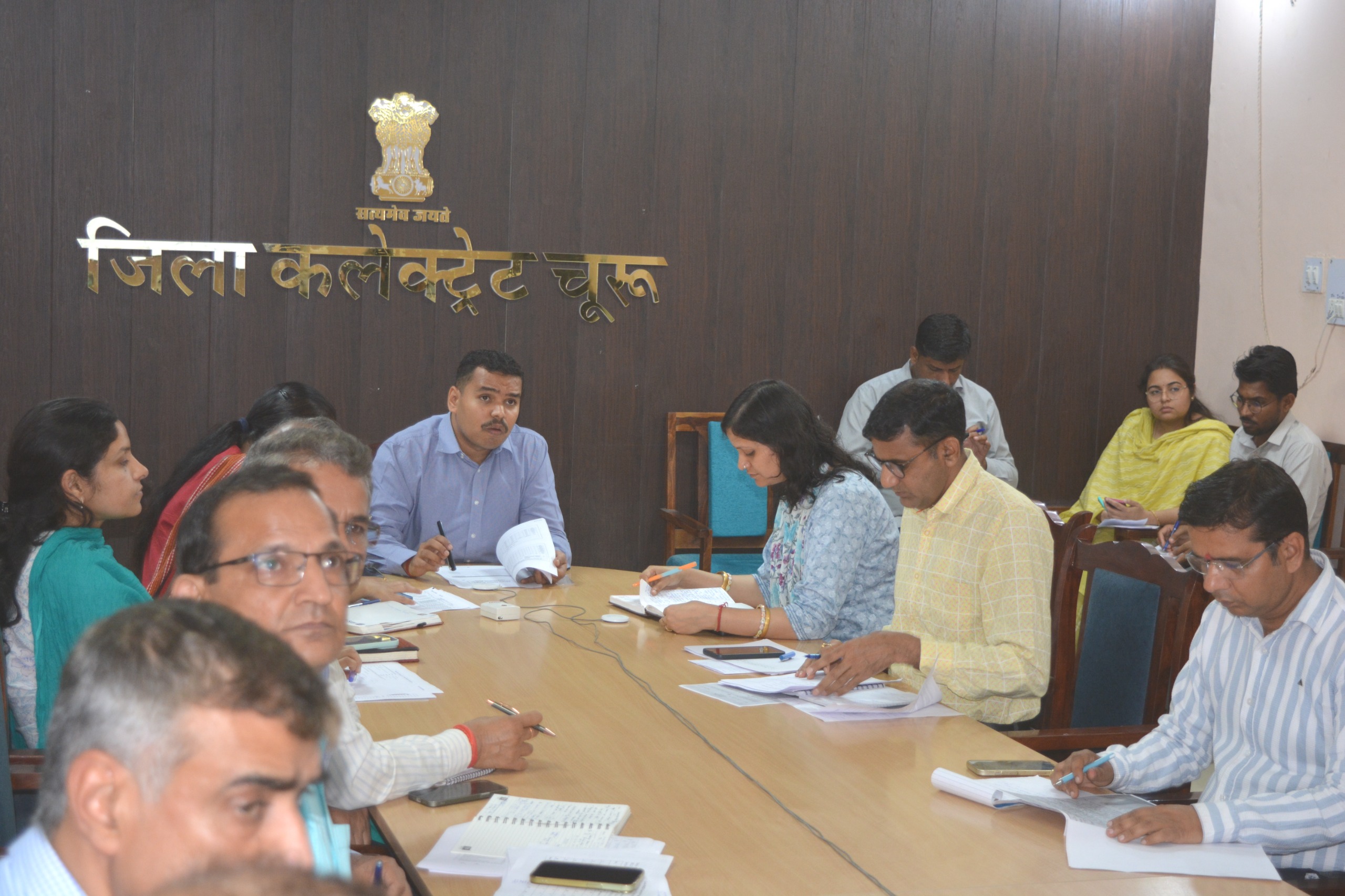 चूरू। जिला कलक्टर अभिषेक सुराणा ने सोमवार को डीओआईटी वीसी सभागार में साप्ताहिक समीक्षा बैठक में आवश्यक सेवाओं, विद्यालयों में प्रवेशोत्सव, ग्रीष्मकालीन कंटीन्जेंसी तैयारियों, बजट घोषणाओं की क्रियान्विति, एलजी आपूर्ति के संबंध में अधिकारियों से चर्चा की और व्यवस्थाओं की समीक्षा करते हुए समुचित निर्देश दिए।इस अवसर पर जिला कलक्टर सुराणा ने कहा कि शिक्षा अधिकारी समन्वित प्रयासों से स्कूलों में नामांकन बढ़ाएं। सभी अधिकारी सुनिश्चित करें कि ड्रॉप आउट बच्चों को अधिकाधिक विद्यालयों से जोड़ा जाए। प्रवेशोत्सव को लेकर समुचित तैयारी सुनिश्चित की जाए।सभी उपखंड अधिकारियों से एलपीजी आपूर्ति को लेकर फीडबैक लेते हुए उन्होंने सभी उपखंड अधिकारी अपने क्षेत्र में एलपीजी आपूर्ति व्यवस्थाओं के संबंध समीक्षा करें तथा पेट्रोल, डीजल आपूर्ति को लेकर भी मुस्तैद रहें।