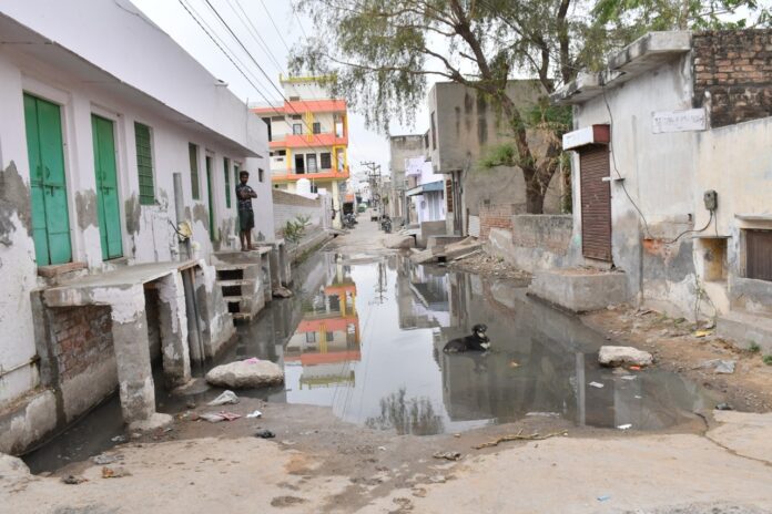 चूरू। वार्ड 30 स्थित ताजुशाह तकिया क्षेत्र में गंदे पानी का चैम्बर अवरूद्ध होने के कारण जमा गंदे पानी से आमजन का हाल-बेहाल है। आपको बतादें कि इसके पास ही शिव मंदिर स्थित है, जिससे लोगों को आवागमन में काफी परेशानियों का सामना करना पड़ रहा है। वार्डवासियों ने बताया कि इस वार्ड की दोनों गलियों में चौबीस घंटे पानी भरा रहता है। गली में बनी दोनों साइड की नालियों का पानी नगर परिषद द्वारा बनाये गये चैम्बर में नहीं जा रहा है। नगर परिषद् द्वारा बनाये गये पम्प हाउस से चैम्बर में जो पानी छोड़ा जाता है, वह भी दोनों नालियों में आ जाता है। इससे 200 घरों के लोगों को काफी परेशानियों का सामना करना पड़ रहा है। इससे स्कूली विद्यार्थियों को काफी परेशानियों का सामना करना पड़ रहा है। वार्डवासियों ने बताया कि नगर परिषद् को अवगत कराने के बाबजूद भी इस ओर कोई ध्यान नहीं दिया जा रहा है और यह समस्या जस की तस बनी हुई है।