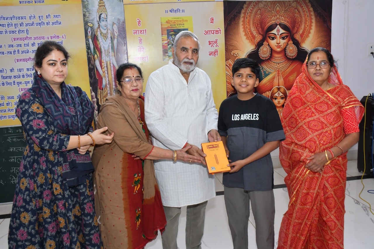 चूरू। स्थानीय भास्कर भवन में सराफ फाउंडेशन की ओर से संचालित गीता क्लासेज के बच्चों में रविवार को गीता पढ़ने के साथ-साथ गीता लिखने में भी जबरदस्त उत्साह देखा गया। कार्यक्रम संयोजक संजय सिंघानिया ने बताया कि हमारे द्वारा प्रत्येक बच्चें पर फोकस किया जा रहा है। बच्चों की हैंड़ राइटिंग और शुद्धता पर भी विशेष ध्यान दिया जा रहा है। कार्यक्रम का शुभारम्भ श्याम भोजक, संजय सिंघानिया, हर्षित सोनी, दिव्या शर्मा, दिव्या भाटी व पूनम शर्मा ने दीप प्रज्जवलित कर किया। इस दौरान नियमित अध्ययन के साथ-साथ बच्चों को जीवन जीने के जरूरी नियमों की जानकारी दी गई। इस अवसर पर वंदना, कृतिका, कोमल, अंकिता, युधिष्ठिर, रिद्धिमा, मनस्वी, निहारिका, दामिनी, दिव्यम, वंशिका, हिमांशु, ईशा सहित बड़ी संख्या में विद्यार्थी व स्टॉफ सदस्य उपस्थित थे। कार्यक्रम का संचालन मोहित सिंघानिया ने किया।