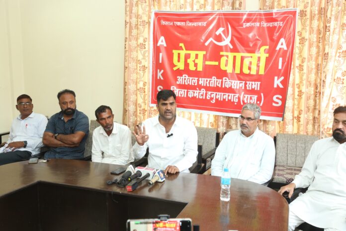अखिल भारतीय किसान सभा, हनुमानगढ़ द्वारा मंगलवार को किसान भवन, धान मंडी, हनुमानगढ़ जंक्शन में आयोजित प्रेस कॉन्फ्रेंस में किसानों से जुड़े ज्वलंत मुद्दों को लेकर जिला प्रशासन पर गंभीर आरोप लगाए गए। प्रेस वार्ता को संबोधित करते हुए जिला अध्यक्ष मंगेज चौधरी व अन्य पदाधिकारियों ने कहा कि जिले में निजी ब्याज माफिया का जाल तेजी से फैल रहा है, जिसके कारण अब तक 10 किसानों द्वारा आत्महत्या करने की घटनाएं सामने आई हैं। उन्होंने आरोप लगाया कि जिला प्रशासन इस गंभीर समस्या पर कोई प्रभावी कार्रवाई नहीं कर रहा है और नियमों की अनदेखी हो रही है। किसान नेताओं ने हाल ही में हुई ओलावृष्टि का मुद्दा उठाते हुए कहा कि जिले में बड़े स्तर पर फसलों को नुकसान हुआ है, लेकिन सात दिन बीत जाने के बाद भी जिला कलेक्टर द्वारा जमीनी स्तर पर कोई निरीक्षण नहीं किया गया। उन्होंने कहा कि किसान प्रधान जिले में प्रशासन की इस उदासीनता से किसानों में भारी रोष है। प्रेस वार्ता में बताया गया कि पिछले सीजन में जिले में 80 प्रतिशत से अधिक फसल खराबा हुआ था, लेकिन प्रशासन ने केवल चार गांवों में ही खराबा मानकर किसानों को राहत से वंचित कर दिया। किसान नेताओं ने आरोप लगाया कि उस समय भी किसानों की आवाज को अनसुना किया गया था। वर्तमान में खड़ी फसल को नुकसान होने के बावजूद प्रशासन की ओर से कोई ठोस कदम नहीं उठाया जा रहा है। फसल बीमा को लेकर भी किसान सभा ने गंभीर सवाल खड़े किए। उनका कहना था कि लगातार तीन फसलों के खराब होने के बावजूद बीमा क्लेम को शून्य माना जा रहा है, जो सरकार और प्रशासन की विफलता को दर्शाता है। अन्य जिलों में जहां रेंडम क्रॉप कटिंग के माध्यम से नुकसान का आकलन किया जा रहा है, वहीं हनुमानगढ़ में सैटेलाइट के माध्यम से सर्वे किया जा रहा है, जिससे वास्तविक नुकसान सामने नहीं आ पा रहा। उन्होंने बताया कि पहले जहां मुआवजा राशि लगभग 1100 करोड़ रुपये तक पहुंचती थी, वहीं इस बार भारी नुकसान के बावजूद मात्र 1 करोड़ रुपये का मुआवजा प्रस्तावित किया गया है। किसान सभा के नेता गोपाल बिश्नोई चरण प्रीत बराड़ ओम स्वामी ने चेतावनी देते हुए कहा कि यदि आगामी 7 दिनों में फसल बीमा क्लेम की घोषणा नहीं की गई, तो जिले के सभी उपखंड कार्यालयों पर किसान कब्जा करेंगे। साथ ही उन्होंने कहा कि किसानों के पास अब आंदोलन के अलावा कोई विकल्प नहीं बचा है और जल्द ही जिला कलेक्ट्रेट के बाहर अनिश्चितकालीन धरना शुरू किया जाएगा। प्रेस कॉन्फ्रेंस में किसान नेताओं ने गेहूं की सरकारी खरीद व्यवस्था को सुचारू रूप से शुरू करने और स्लॉट सिस्टम को समाप्त करने की भी मांग उठाई। उन्होंने प्रशासन से किसानों की समस्याओं का शीघ्र समाधान करने की अपील करते हुए चेताया कि यदि 9 अप्
