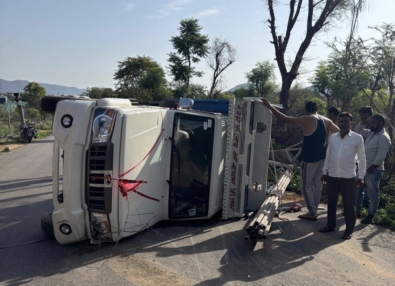 खेतड़ी के टीलावाली के पास मजदूरो से भरी पीकअप अनियंत्रित होकर पलटी