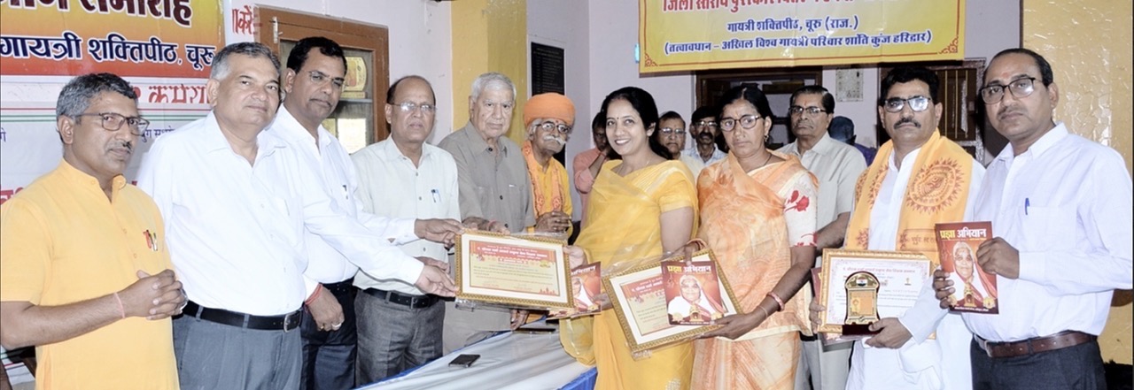 चूरू। अखिल विश्व गायत्री परिवार के तत्वावधान में भारतीय संस्कृति ज्ञान परीक्षा का जिला स्तरीय पुरस्कार वितरण समारोह रविवार को स्थानीय गायत्री शक्तिपीठ में आयोजित किया गया। कार्यक्रम मुख्य जिला शिक्षा अधिकारी संतोष महर्षि एवं डी.के. सैनी की अध्यक्षता में संपन्न हुआ।कार्यक्रम के विशिष्ट अतिथियों में जिला शिक्षा अधिकारी (प्रारंभिक) ओमप्रकाश प्रजापत, सेवानिवृत्त उपनिदेशक शिक्षा गोविंद सिंह राठौड़, शांतिकुंज हरिद्वार के वरिष्ठ प्रतिनिधि राम सिंह राठौड़ तथा गायत्री परिवार चूरू के उप जोन संयोजक बालदान चारण शामिल रहे। कार्यक्रम का शुभारंभ मां गायत्री के समक्ष दीप प्रज्वलन से हुआ। इसके बाद कमल कंवर ने भजन प्रस्तुत कर वातावरण को भक्तिमय बना दिया।जिला संयोजक उमेद सिंह राठौड़ ने परीक्षा 2025 का प्रतिवेदन प्रस्तुत करते हुए स्वागत भाषण दिया। मुख्य अतिथि संतोष महर्षि ने शिक्षकों से अधिक से अधिक विद्यार्थियों को इस संस्कार निर्माण प्रतियोगिता से जोड़ने का आह्वान किया। ओमप्रकाश प्रजापत ने कहा कि चूरू जिला भी अन्य जिलों की तरह बड़ी संख्या में भागीदारी सुनिश्चित कर अग्रणी बन सकता है।गोविंद सिंह राठौड़ ने विद्यार्थियों को आत्मविश्वास बढ़ाने और माता-पिता को सर्वोपरि मानने की प्रेरणा दी, वहीं राम सिंह राठौड़ ने संस्कारयुक्त शिक्षा के महत्व पर जोर दिया। छात्रा मेघना पारीक ने अपने ओजस्वी उद्बोधन से भारतीय संस्कृति के महत्व को रेखांकित किया।समारोह में तीन राज्य स्तरीय शिक्षकों एवं 18 जिला स्तरीय शिक्षकों को उत्कृष्ट योगदान के लिए सम्मानित किया गया। राज्य मेरिट में बालाजी शिक्षण संस्थान सुजानगढ़ की छात्रा भारती कंवर को तृतीय स्थान प्राप्त करने पर सम्मानित किया गया। इसके अलावा 24 विद्यार्थियों को जिला स्तर तथा 144 विद्यार्थियों को तहसील स्तर पर प्रथम तीन स्थान प्राप्त करने पर सम्मान प्रदान किया गया।कार्यक्रम में 300 से अधिक शिक्षक एवं अभिभावकों की उपस्थिति रही। विभिन्न तहसीलों से आए संयोजकों एवं कार्यकर्ताओं ने आयोजन को सफल बनाने में सहयोग दिया। कार्यक्रम का संचालन मुकुल भाटी ने किया, जबकि जिला सचिव पृथ्वीराज सैनी ने आभार व्यक्त किया।