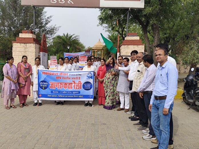 महिलाओं और किशोरियों को सर्वाइकल कैंसर जैसी गंभीर बीमारी से बचाने के लिए झुंझुनूं में व्यापक स्तर पर मुफ्त एचपीवी टीकाकरण अभियान ने गति पकड़ ली है। शुक्रवार को शहर में निकाली गई भव्य जागरूकता रैली ने इस अभियान को जन-जन तक पहुंचाने का काम किया। शहीद स्मारक से शुरू हुई इस रैली में एएनएम ट्रेनिंग सेंटर की छात्राओं ने जोश और उत्साह के साथ भाग लिया। हाथों में पोस्टर-बैनर लिए छात्राओं ने टीकाकरण के महत्व का संदेश देते हुए लोगों को जागरूक किया।