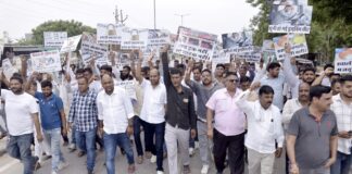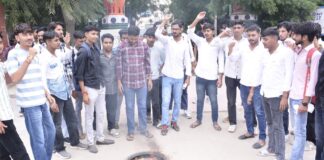एनएसयूआई के कार्यकर्ता द्वारा विरोध प्रदर्शन