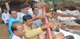 पूर्व सांसद डा.महेशचन्द्र शर्मा के जन्मदिन पर गायों खियाला