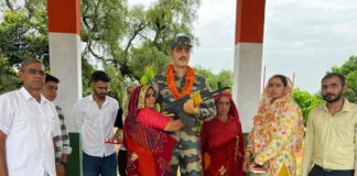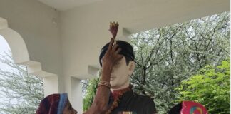 शहीद की प्रतिमा को राखी बांधकर भावुक हुई बहन