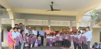 एयू स्मॉल फाइनेंस बैंक ने बच्चों को बांटे स्कूल बैग