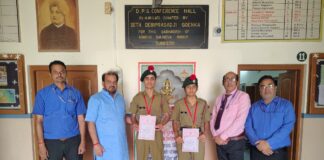 डीवीपी के कैडेट देवेंद्र और अनुश्री का किया सम्मान