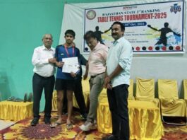 खेलो इंडिया टेबल टेनिस सेंटर चूरू के खिलाड़ी सेज़ान खान ने जोधपुर में किया शानदार प्रदर्शन