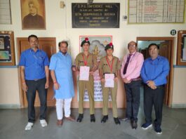 डीवीपी के कैडेट देवेंद्र और अनुश्री का किया सम्मान