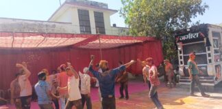 मुकुंदगढ़ थाने में पुलिस कर्मियों ने होली खेली